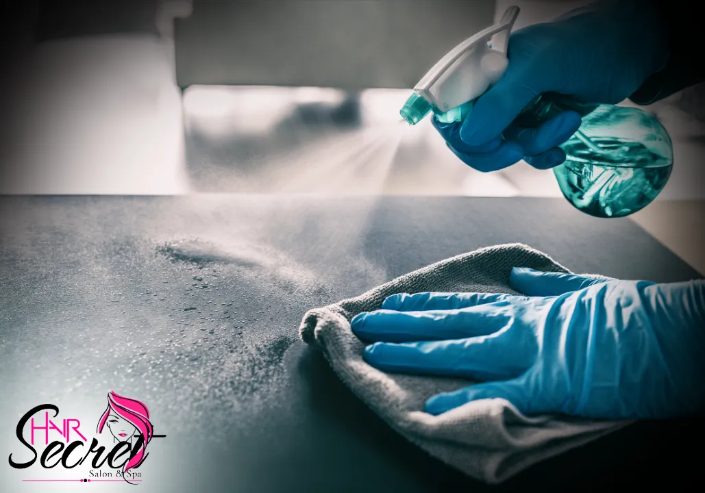 Proper techniques to maintain a clean, safe, and bacteria-free salon environment.